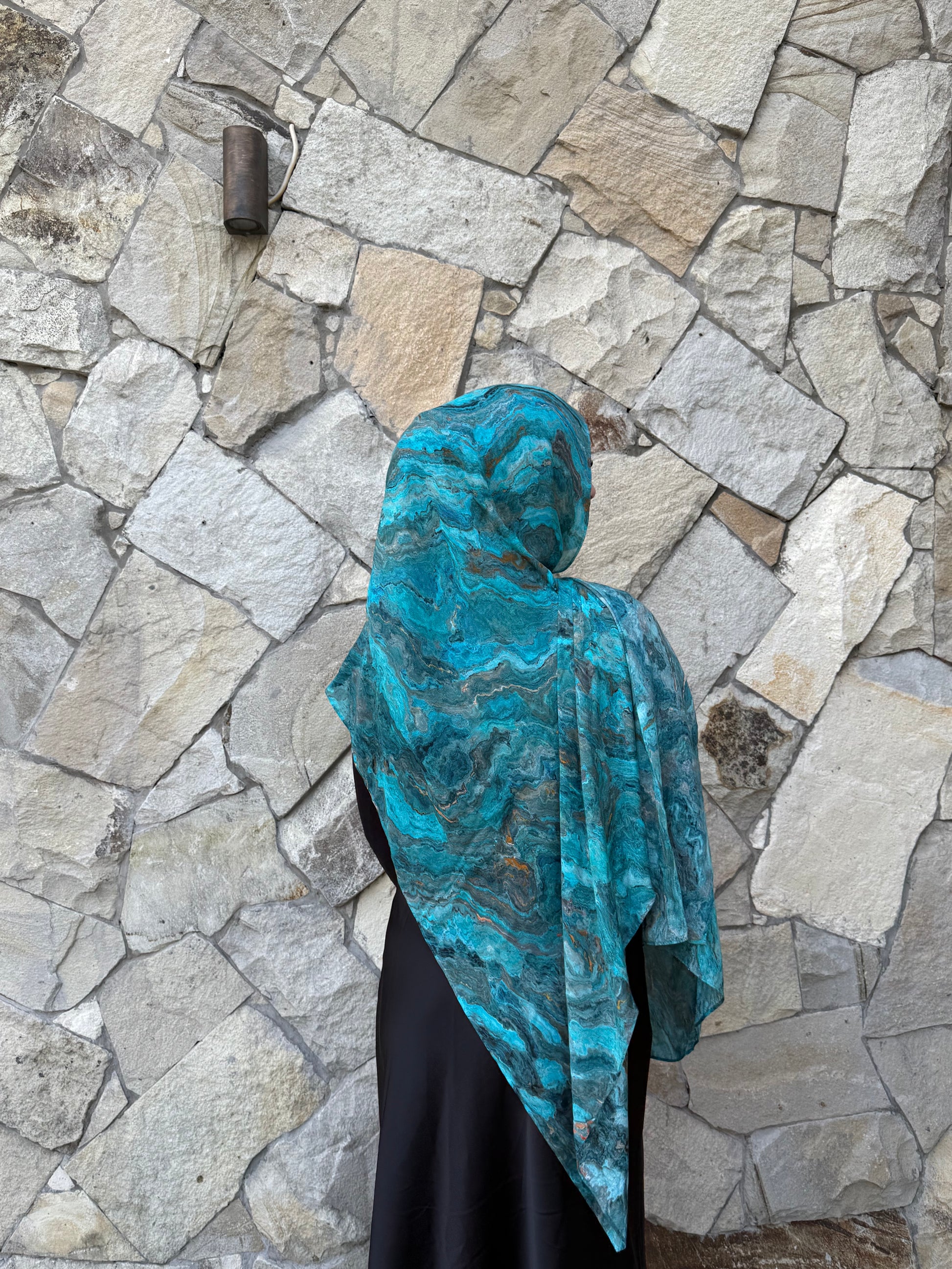 Our exclusive printed modal 'Turquoise Muse' is inspired by the depth of ocean currents and the richness of natural gemstones. With swirling turquoise tones accented by earthy browns and hints of teal, this design is bold yet grounding, a true statement piece for elevating any look with confidence and grace.